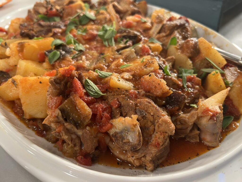 Αρνί με μελιτζάνες και πατάτες στον φούρνο