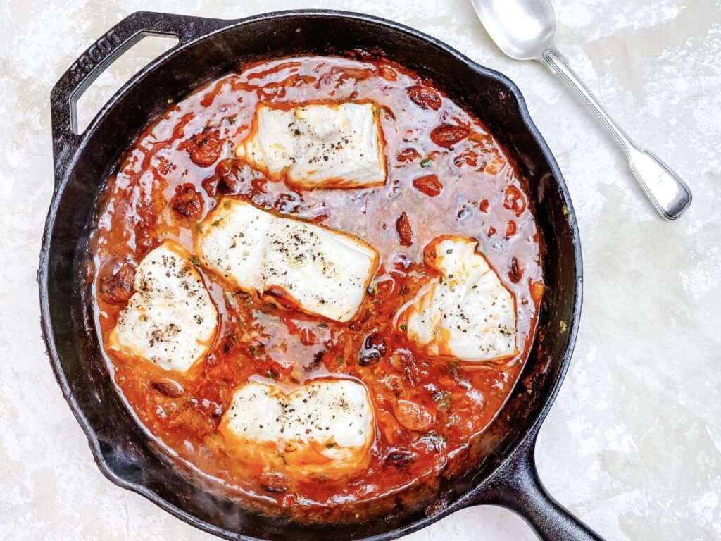 Σαγανάκι με λουκάνικο, πατάτες και ξινομυζήθρα