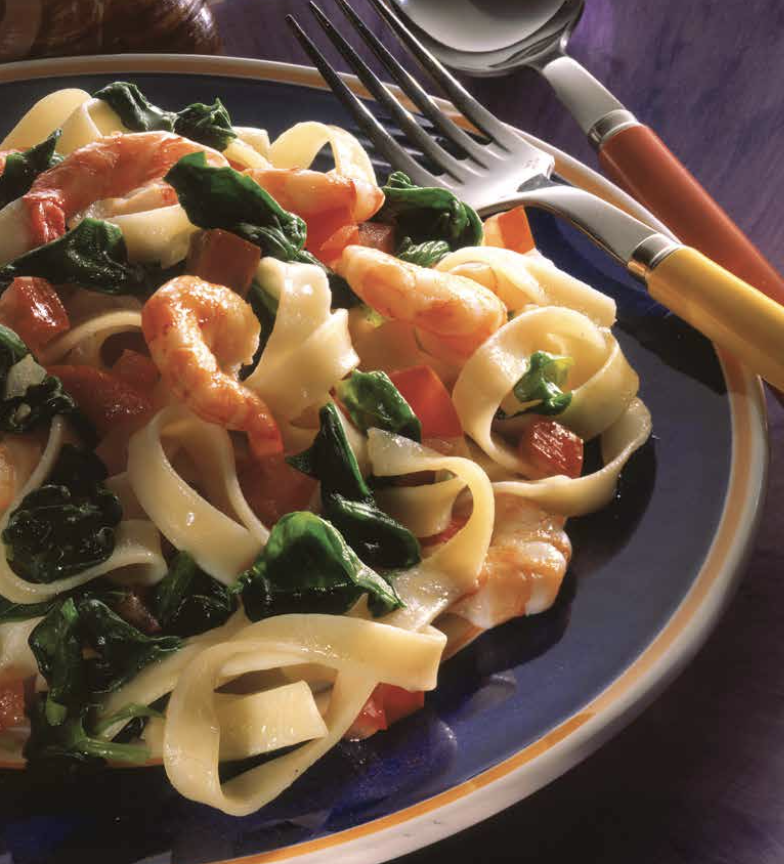 Ταλιατέλες με γαρίδες και σπανάκι