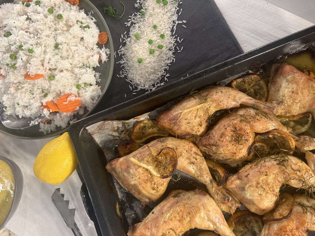 Μπουτάκια κοτόπουλο με ρύζι και σάλτσα μουστάρδας