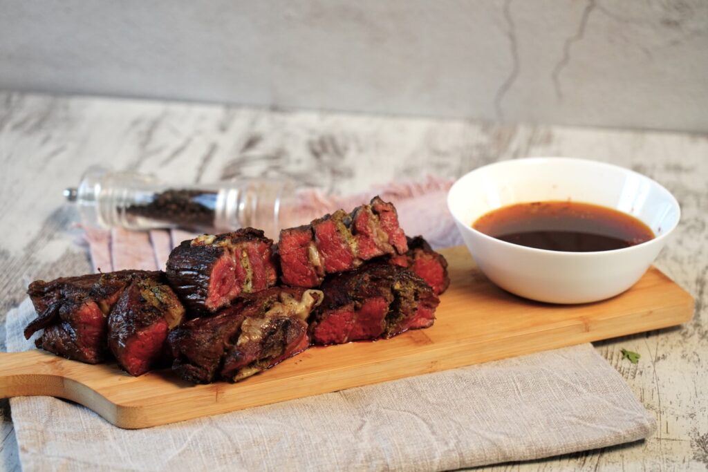 Pinwheels από flank steak με πέστο βασιλικού και μοτσαρέλα