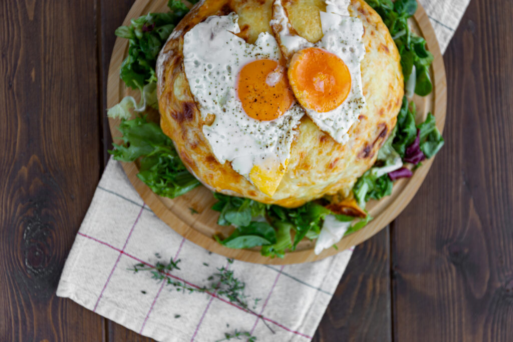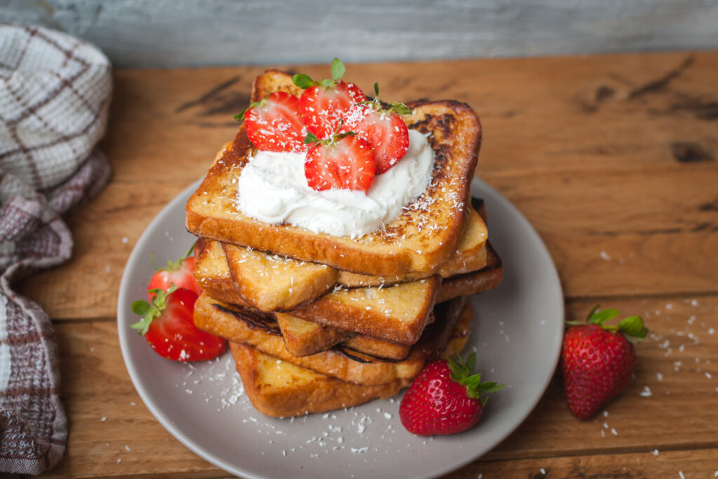 Αυγόφετες από τσουρέκι με μους γιαουρτιού και μαρμελάδα φράουλας