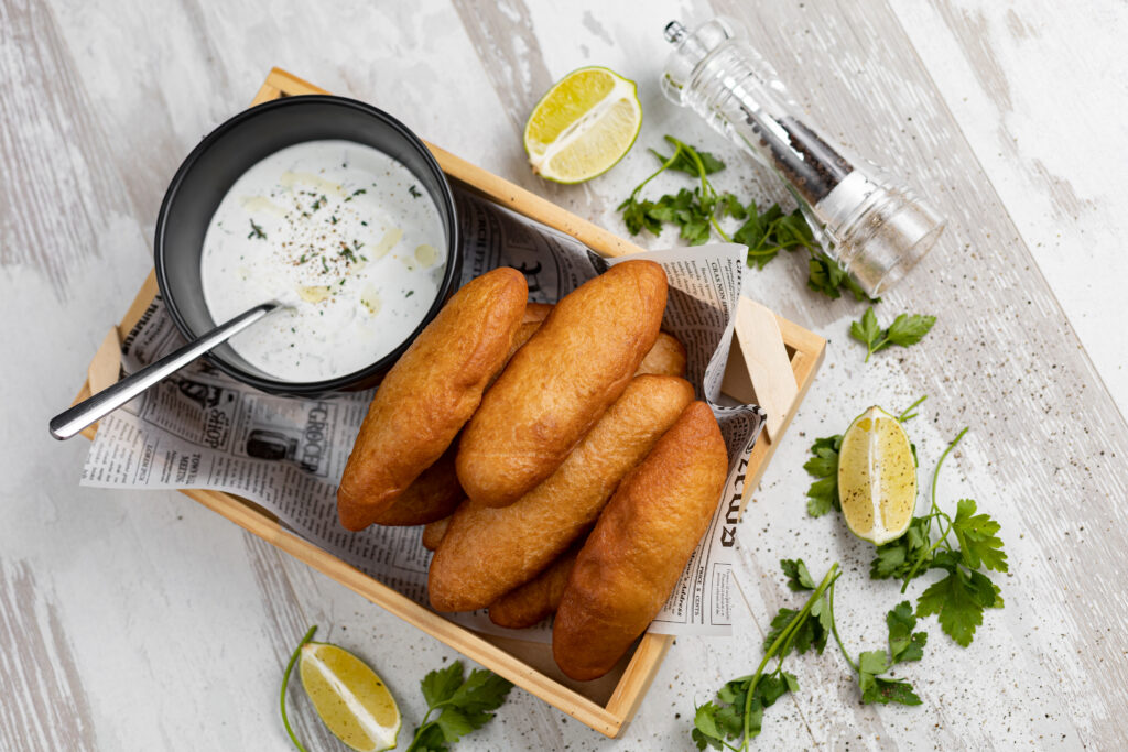 Πιροσκί με κιμά και σάλτσα από γιαούρτι