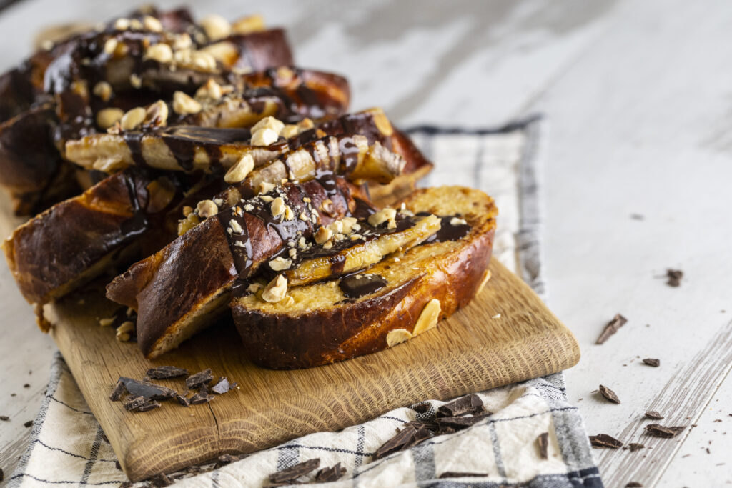 Αυγόφετες από τσουρέκι με καραμελωμένη μπανάνα και σάλτσα σοκολάτας