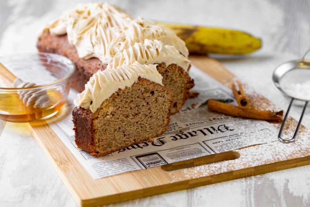 Banana bread με frosting μελιού