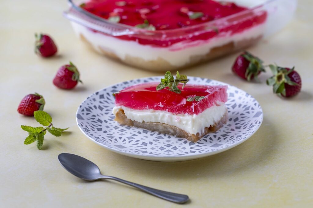 Μαμαδίστικο γλυκό ψυγείου με κρέμα λευκής κουβερτούρας Γιώτης, Φρουί Ζελέ Φράουλας Γιώτης αρωματισμένο με δυόσμο