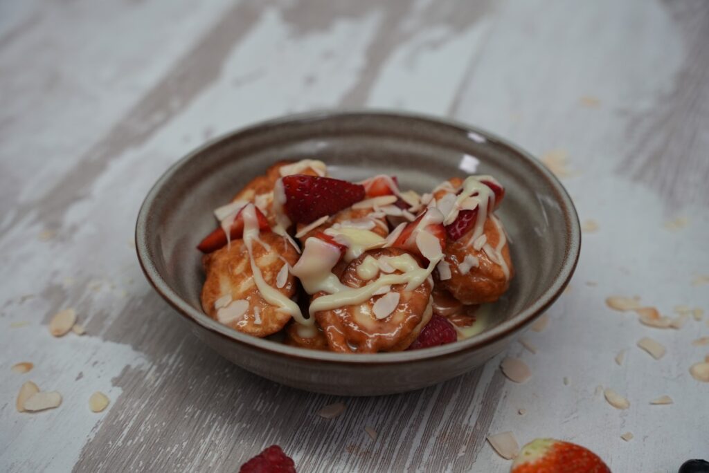 Τηγανίτες με σάλτσα σοκολάτας και φρέσκα φρούτα
