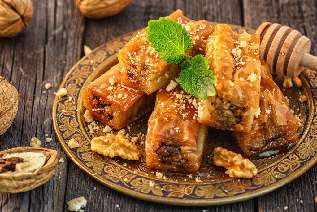 Μπακλαβάς με καρύδια και φιστίκια Αιγίνης