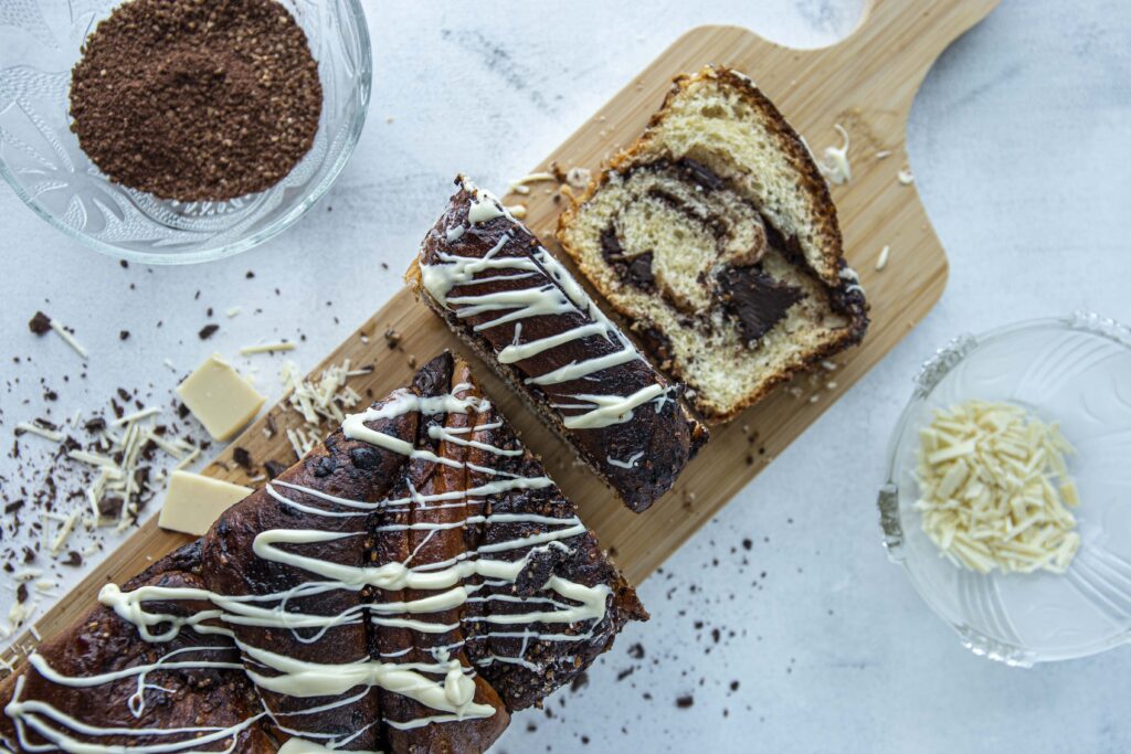Τσουρέκι με πραλίνα και επικάλυψη σοκολάτας
