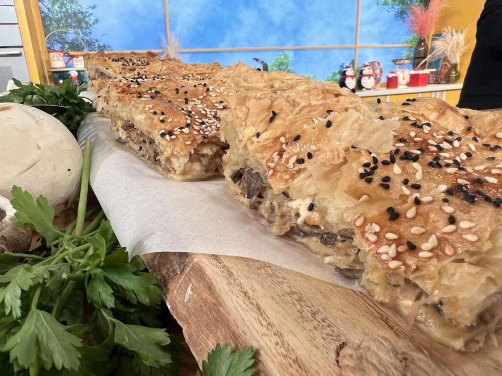 Μανιταρόπιτα με λάδι τρούφας και μπέικον