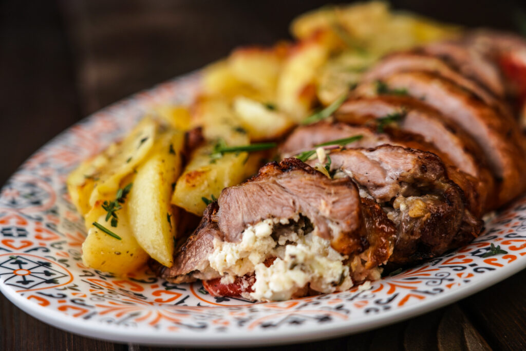 Αρνίσιο μπούτι γεμιστό με φέτα πιπεριά Φλωρίνης και κίτρινα τυριά