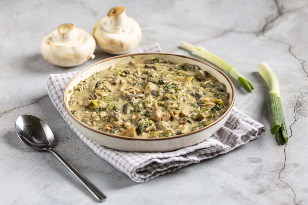 Μαγειρίτσα με μανιτάρια και ταχινολέμονο