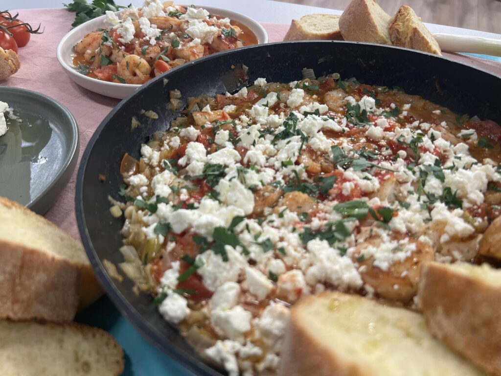 Γαρίδες σαγανάκι με ούζο