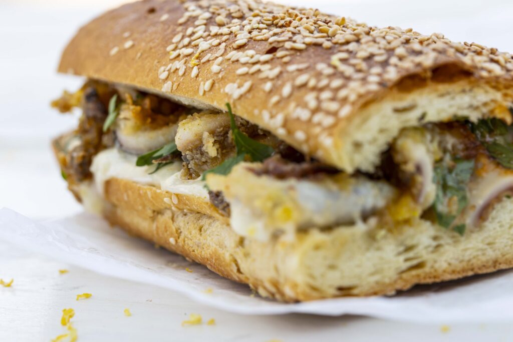 Καλαμαράκια τηγανητά σε μπαγκέτα με αγιολί
