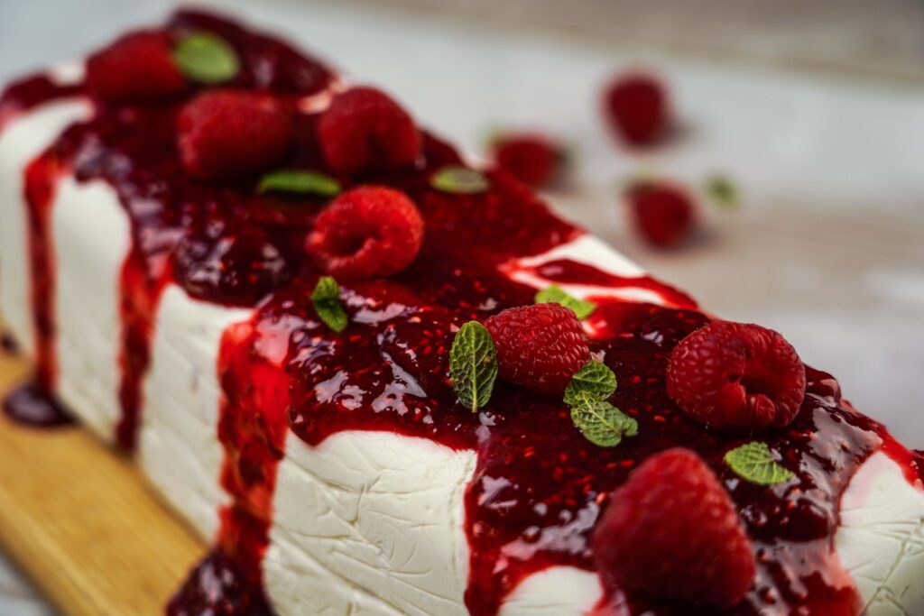 Εύκολο παγωτό γιαούρτι με σάλτσα από φρούτα του δάσους