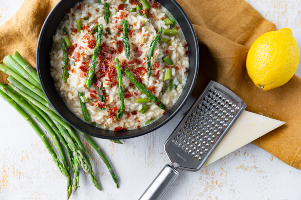 Ribeye με baby πατάτες, σπαράγγια και σάλτσα chimichurri