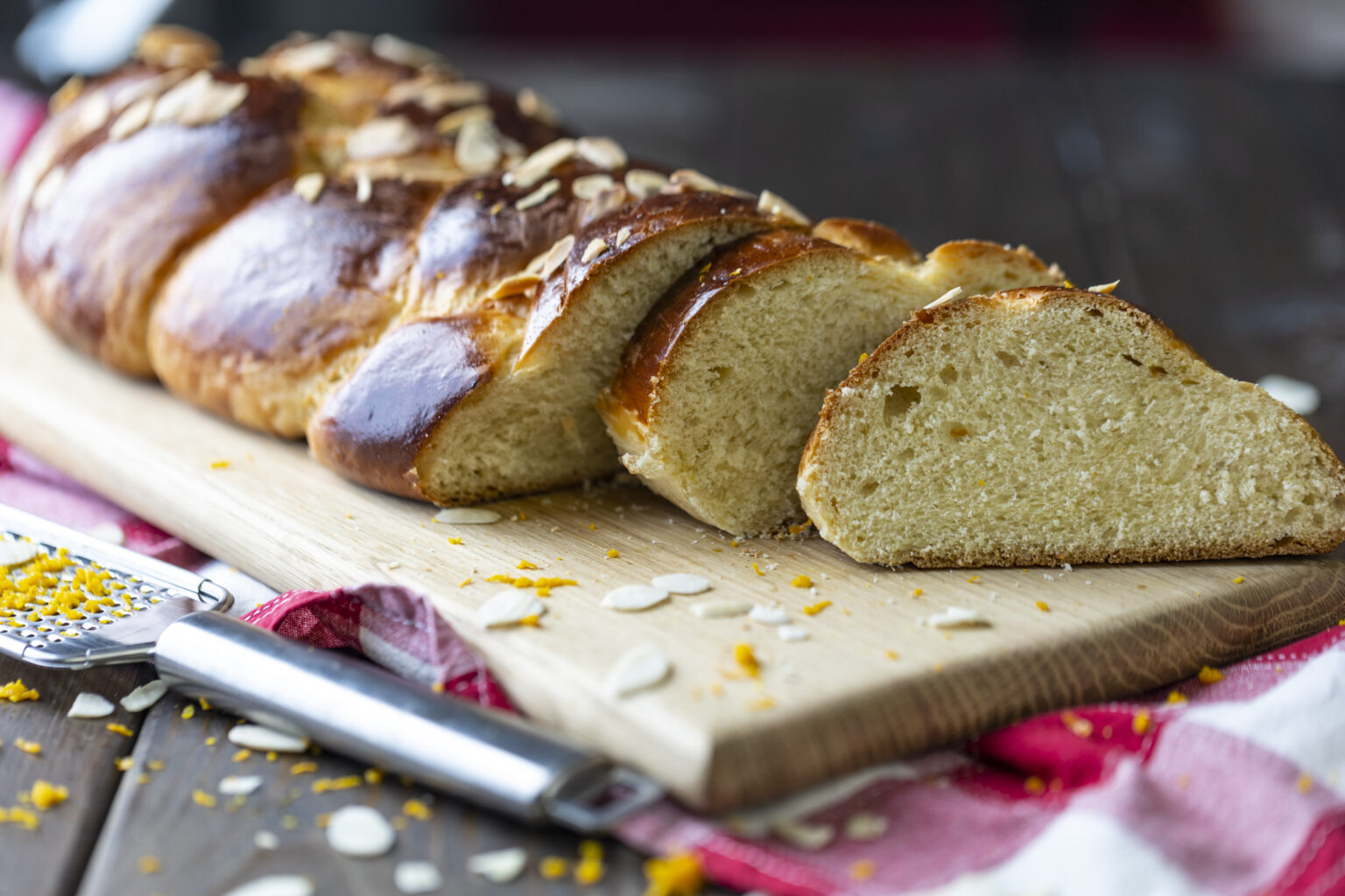 • Πασπαλίζουμε τα τσουρέκια με το φιλέ αμυγδάλου.