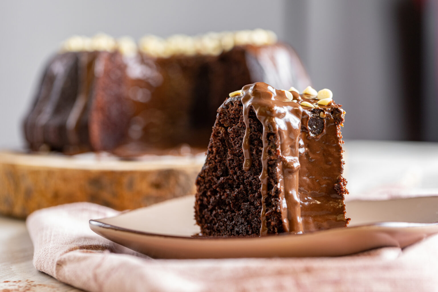 • Πασπαλίζουμε πάνω από το γλάσο με τις σταγόνες λευκής κουβερτούρας και σερβίρουμε σε κομμάτια.