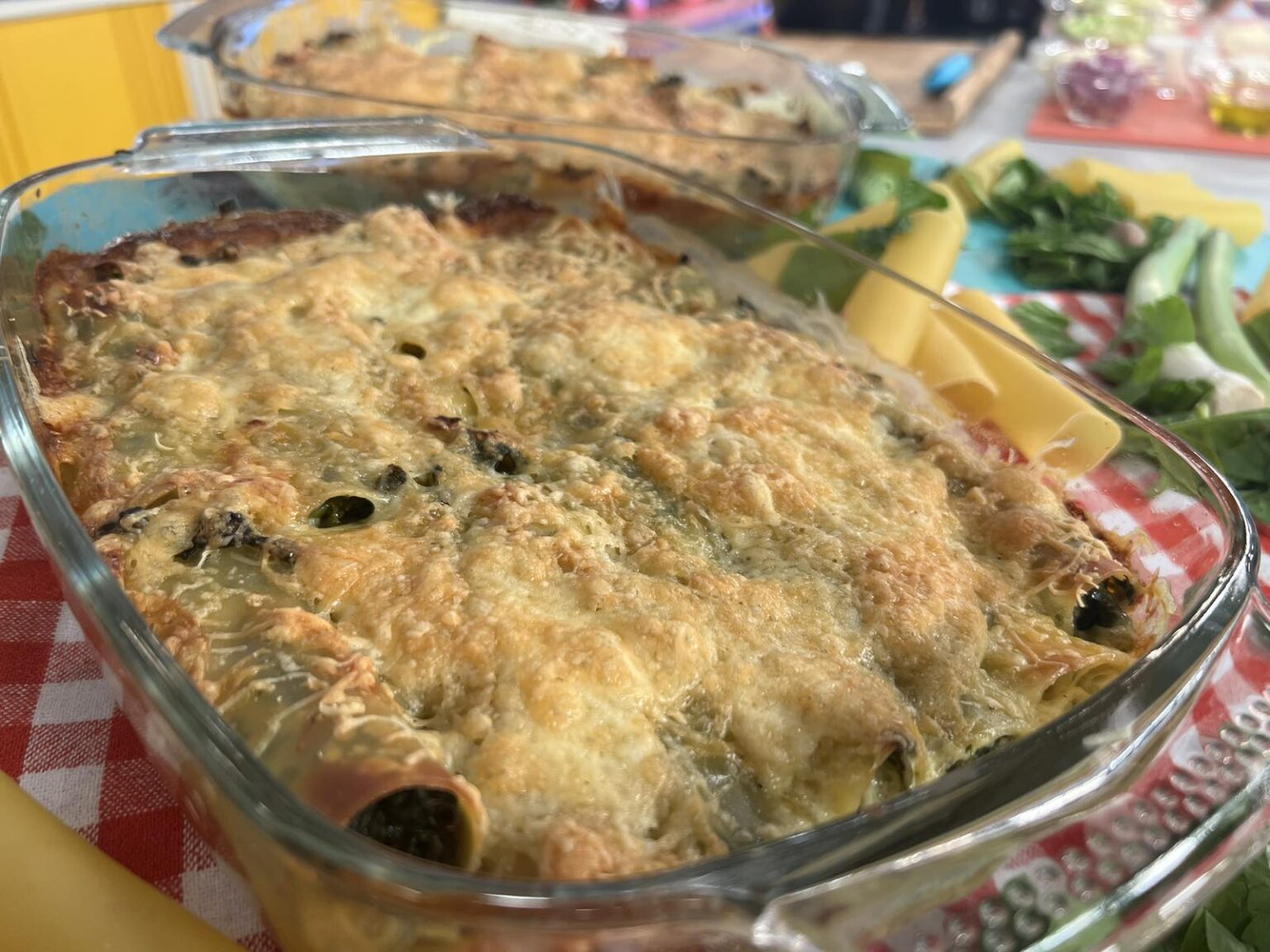 • Αφαιρούμε το αλουμινόχαρτο, αυξάνουμε τη θερμοκρασία του φούρνου στους 200°C και ψήνουμε, ώστε να πάρουν χρώμα τα κανελόνια, για ακόμα 10-15 λεπτά.
