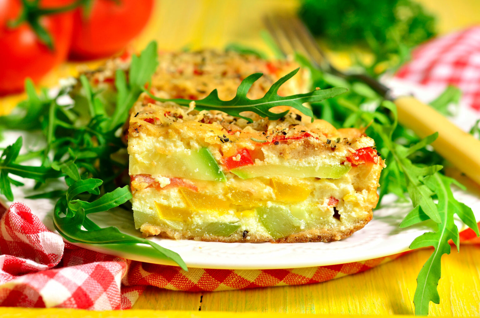• Ψιλοκόβουμε το κρεμμύδι και το σκόρδο και κόβουμε σε ροδέλες πάχους 1 εκ. τις πατάτες και τα κολοκύθια.
