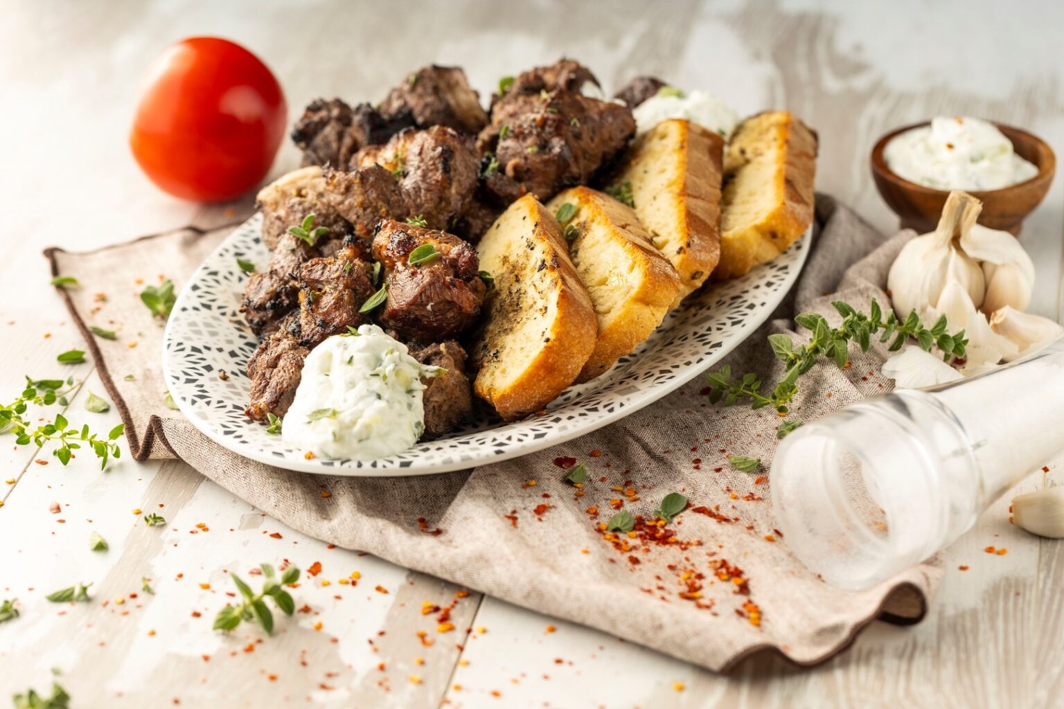 • Σερβίρουμε σε μεγάλο δίσκο σερβιρίσματος το κοντοσούβλι μαζί με τις φρυγανισμένες φέτες ψωμί και το τζατζίκι δίπλα σε ένα μικρό μπολ.