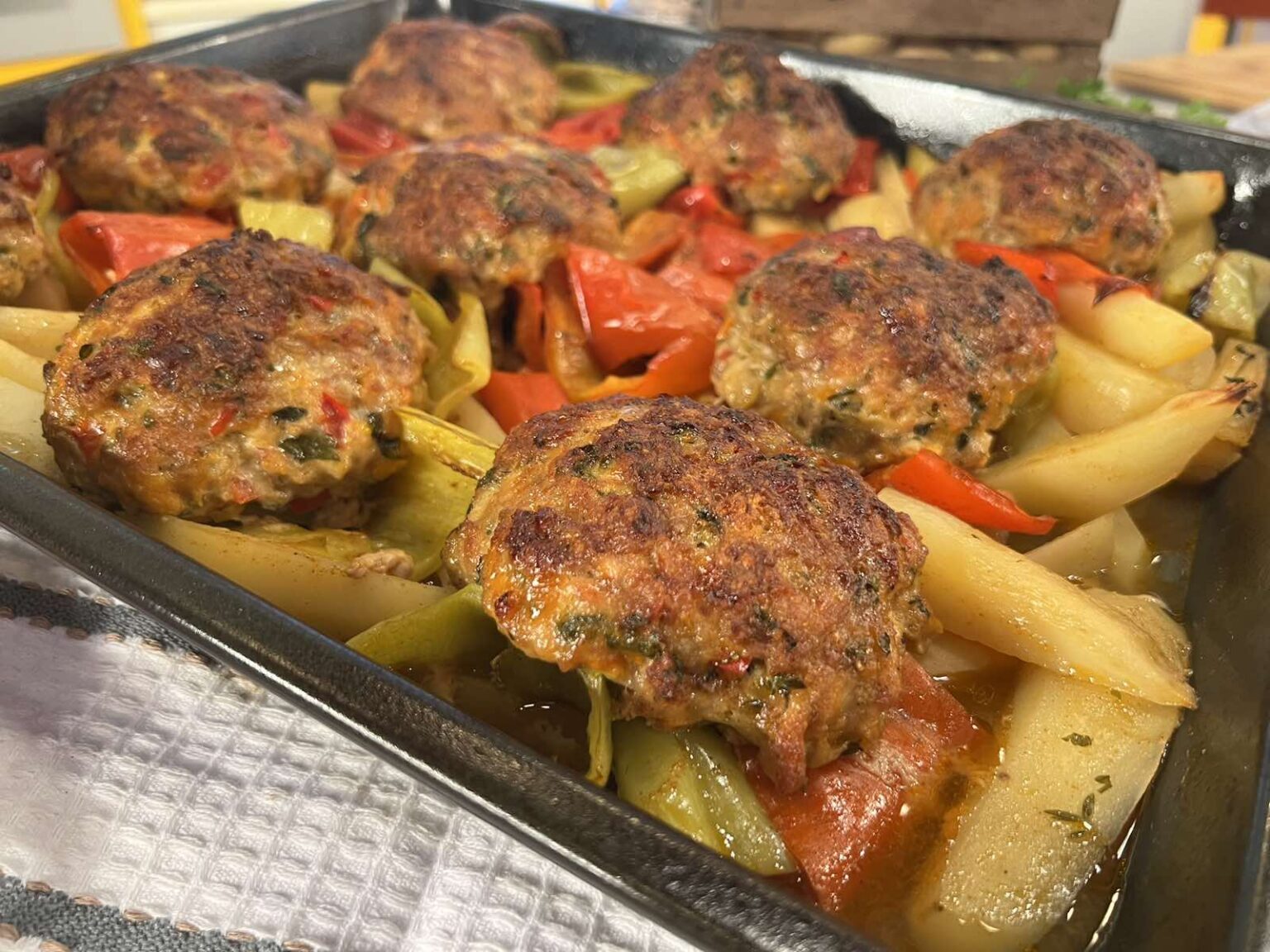 Μπιφτέκια κοτόπουλο με πατάτες και πιπεριές στον φούρνο