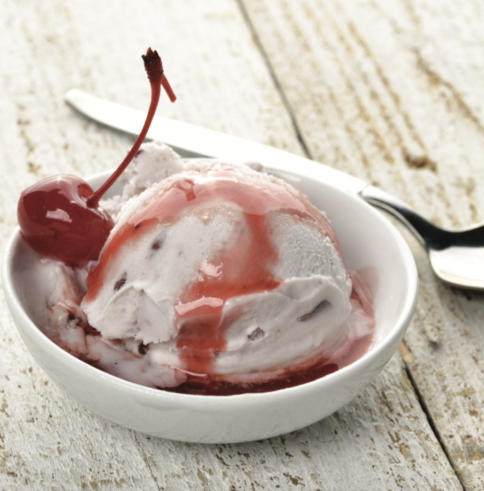 • Όταν το παγωτό αρχίσει να πήζει, αδειάζουμε μέσα το γλυκό βύσσινο και ανακατεύουμε με ένα κουτάλι.