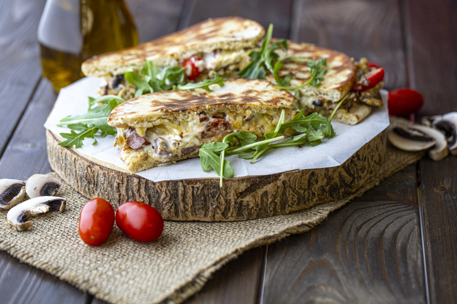 • Σκεπάζουμε με τη δεύτερη πίτα για σουβλάκι και ψήνουμε για 2 λεπτά από κάθε πλευρά, σε μέτρια φωτιά.