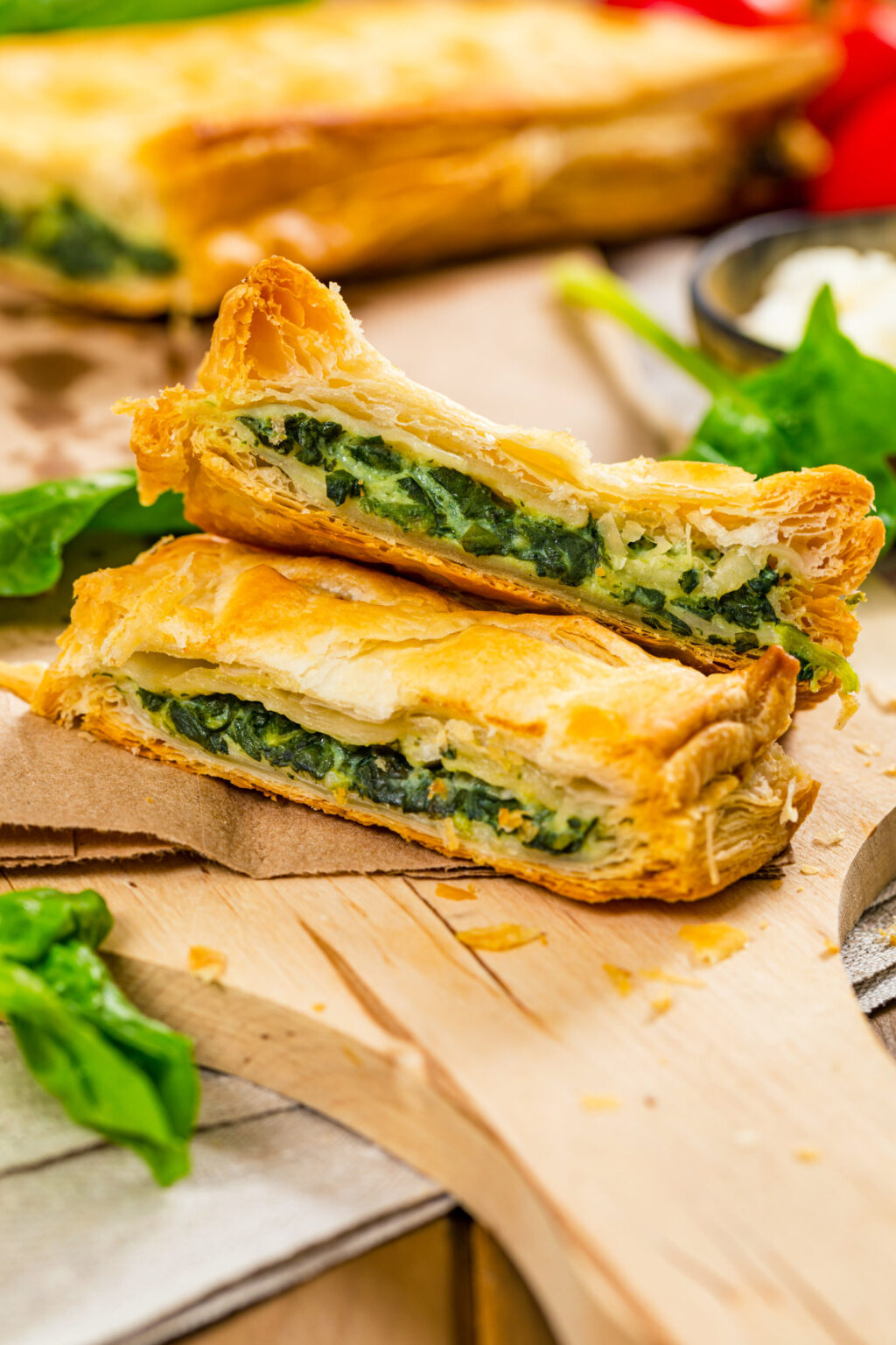 • Απλώνουμε πάνω από τη γέμιση τα υπόλοιπα φύλλα, επαναλαμβάνοντας την ίδια διαδικασία με προηγουμένως.