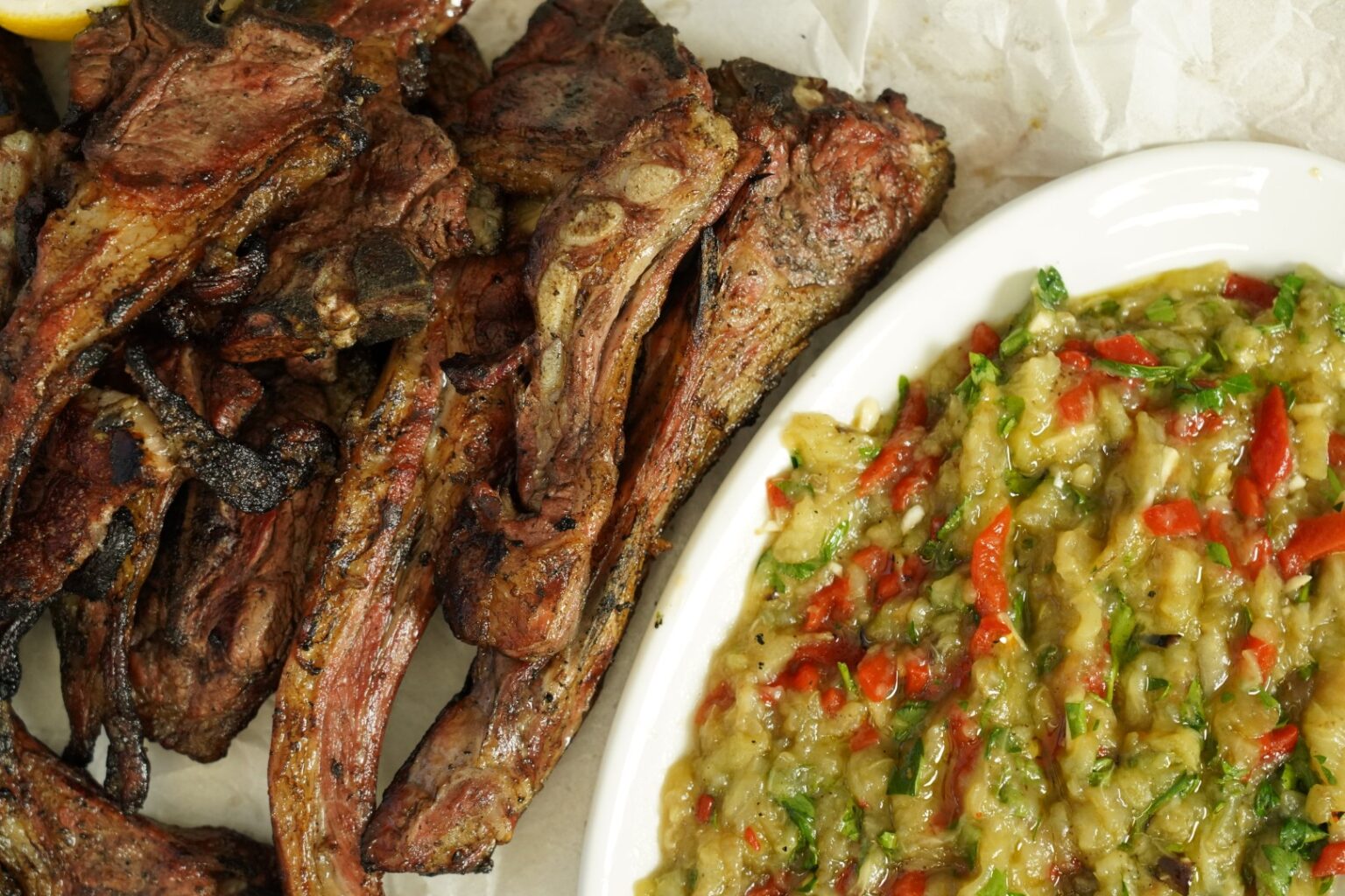 Καπνιστά παϊδάκια με μελιτζανοσαλάτα