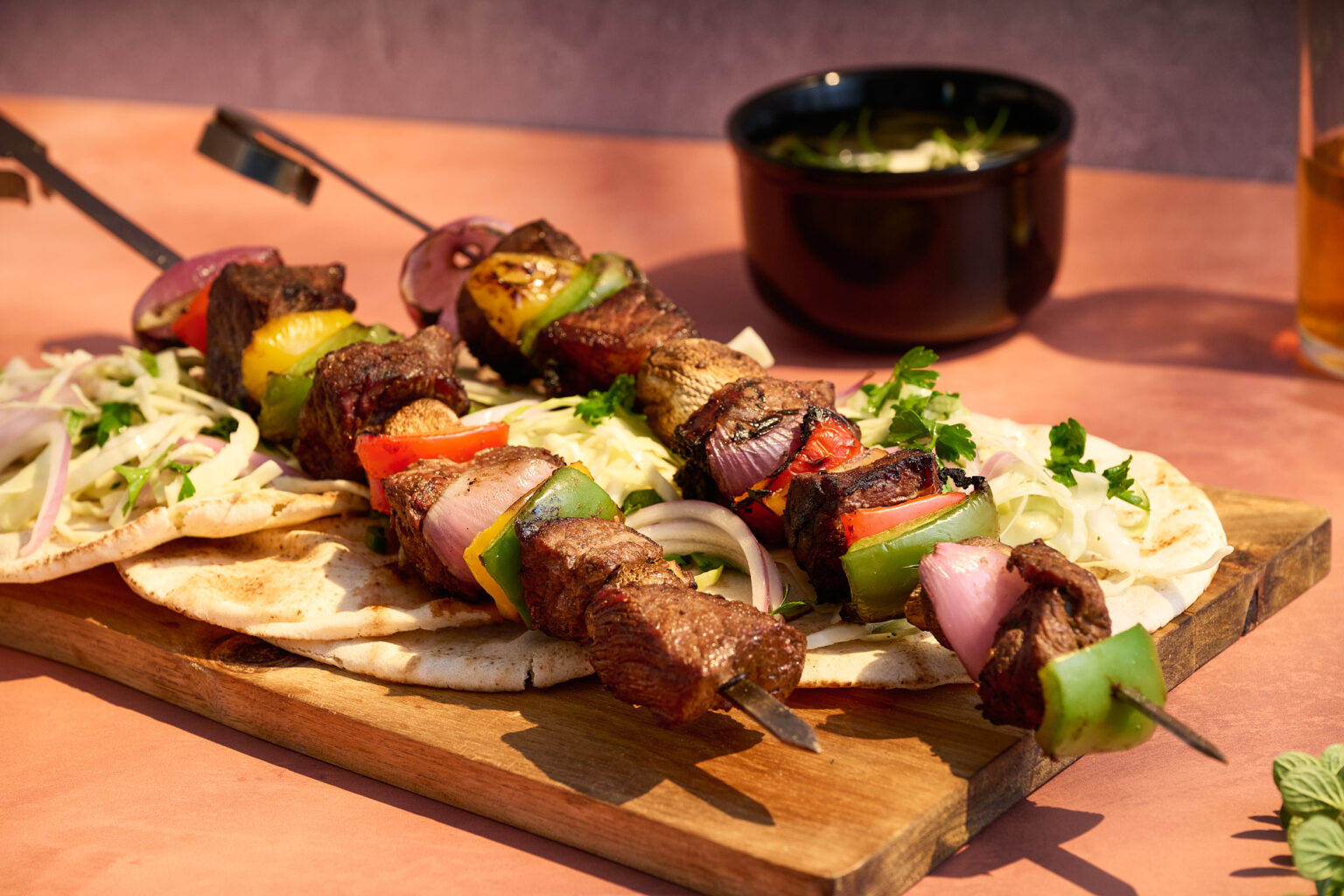 • Αλείφουμε με την υπόλοιπη μαρινάδα τα μοσχαρίσια κεμπάπ, πριν τα βάλουμε στην ψησταριά.