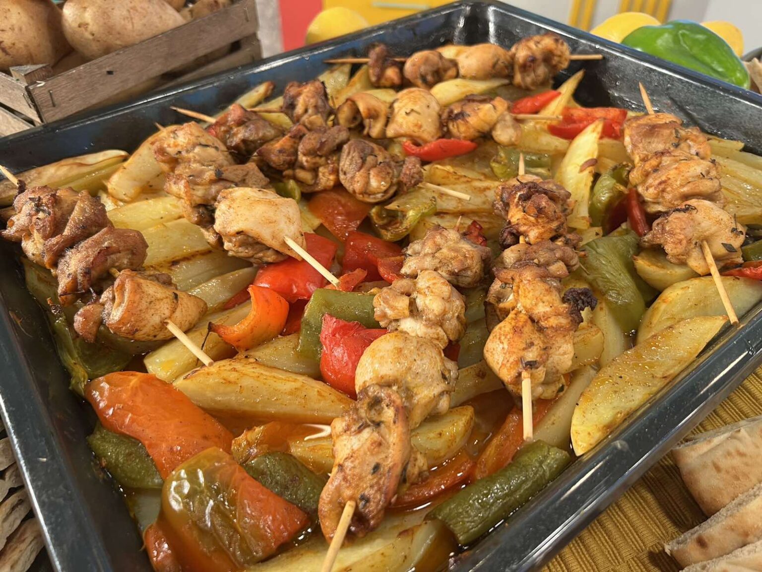• Σερβίρουμε ζεστά τα σουβλάκια με τις πατάτες.