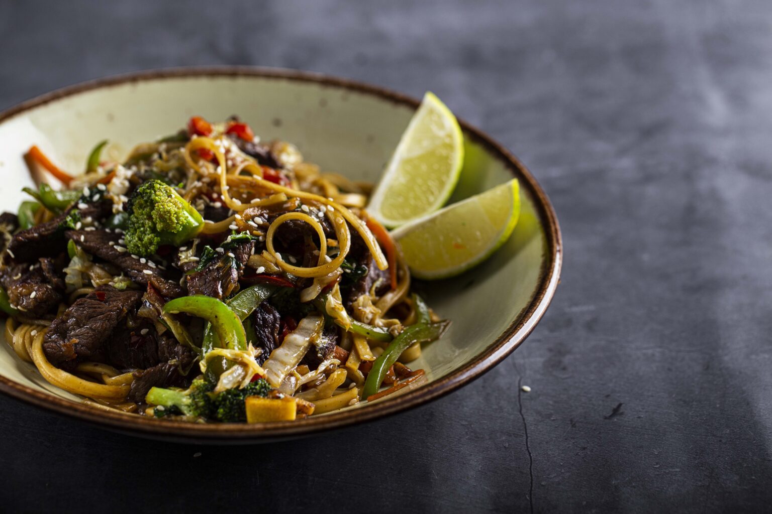 • Σε ένα καυτό γουόκ ή τηγάνι προσθέτουμε το ηλιέλαιο και σοτάρουμε το μοσχάρι κομμένο σε λωρίδες.