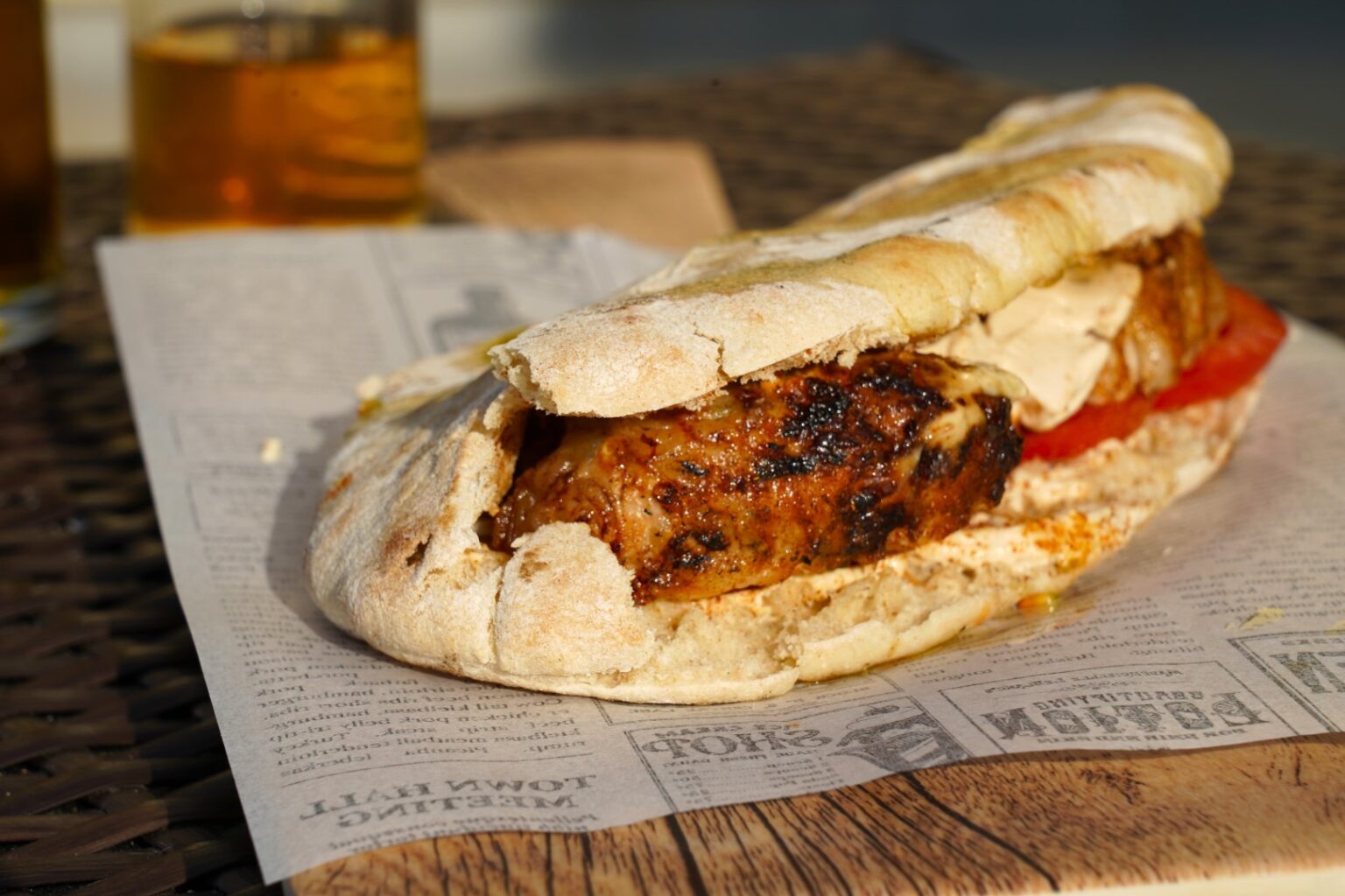• Ανοίγουμε τις κυπριακές πίτες και τις ζεσταίνουμε στην ψησταριά, για 1-2 λεπτά.