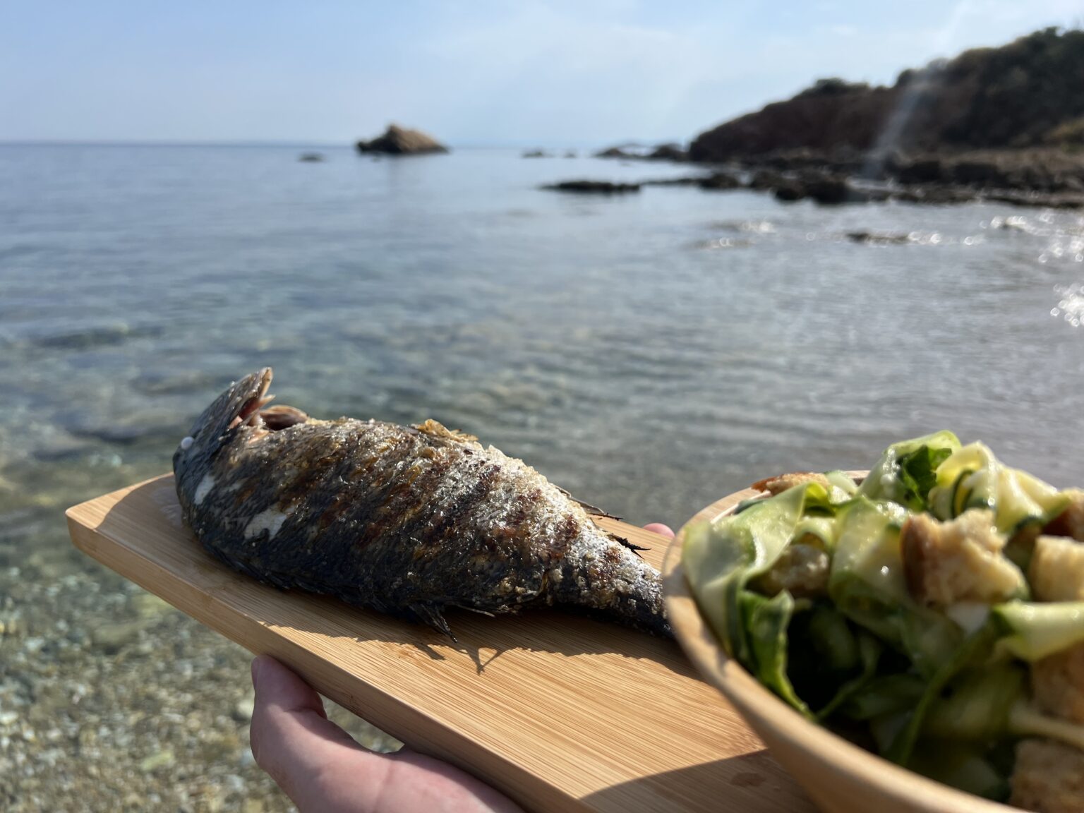 • Σερβίρουμε την τσιπούρα με μια μεγάλη ποσότητα από την καλοκαιρινή σαλάτα κολοκυθιών στο πλάι.