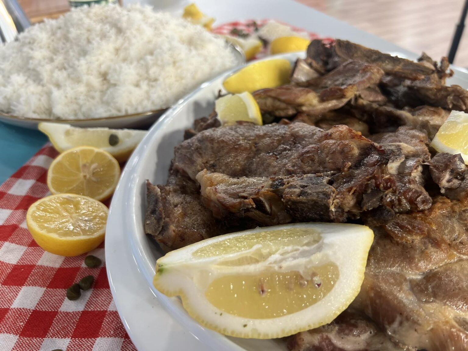 • Προσθέτουμε στα πιάτα τις μπριζόλες, 4 κουταλιές από το ρύζι με τα μυρωδικά και σερβίρουμε.